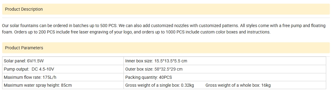 Hot Tags: Miniature Miniature Gairdín Gréine 1.5W DC Caidéal Fountain Caidéal Tírdhreacha Miniature Gréine Caidéal Maisiúcháin Linnte Tírdhreacha, Mórdhíola, an tSín, is nuaí, Durable, Díolachán is déanaí, Déantóirí, Déanta sa tSín